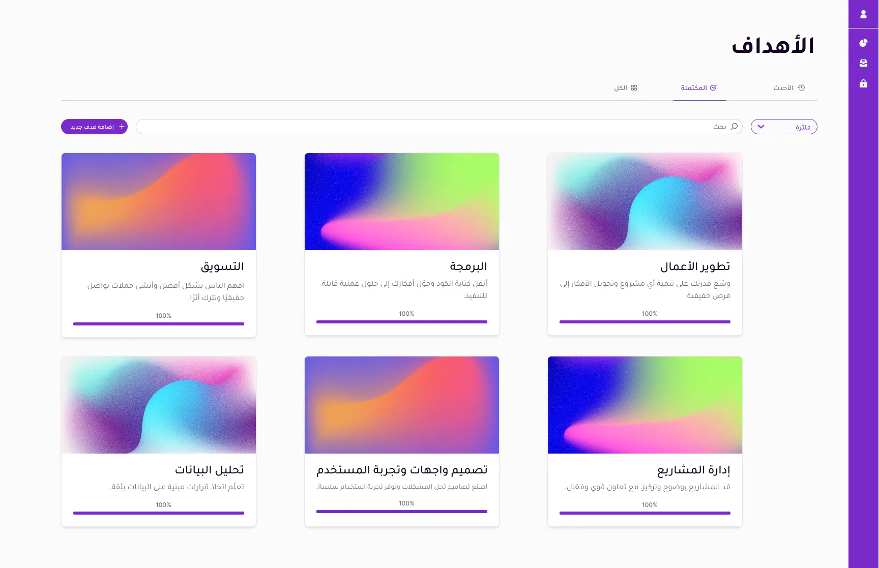 لوحة تحكم واحدة تضع أھدافك، مھامك، ومتابعة تقدمك أمامك بوضوح، مع بیاد تقدر تدیر وقتك وتنجز أكثر